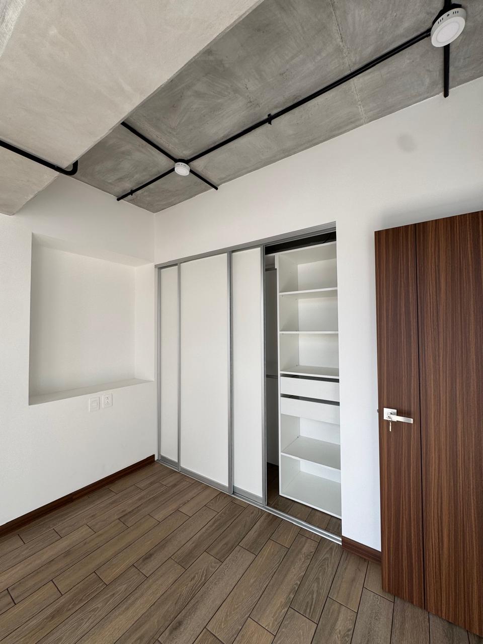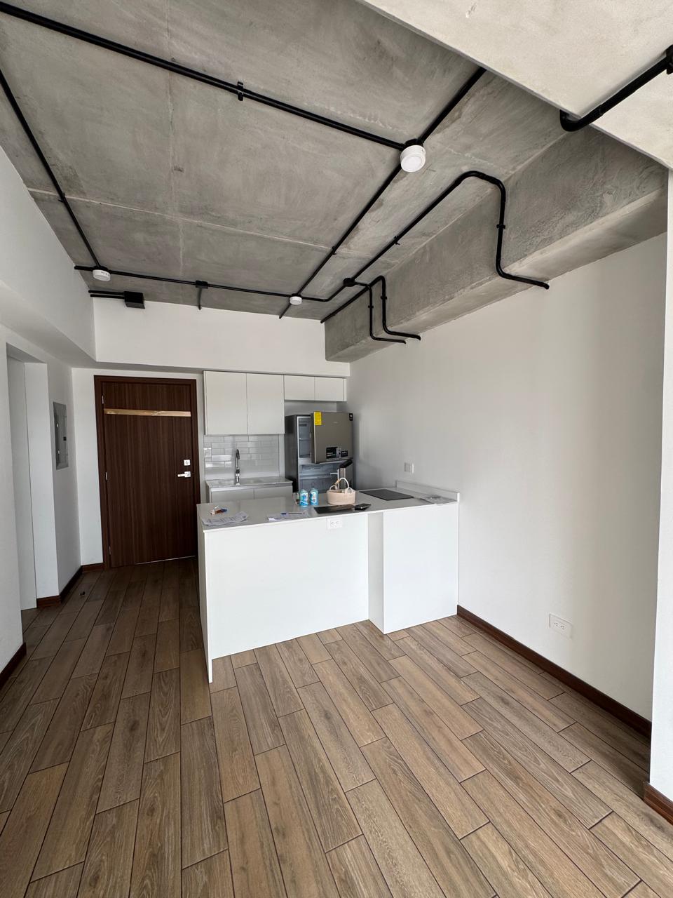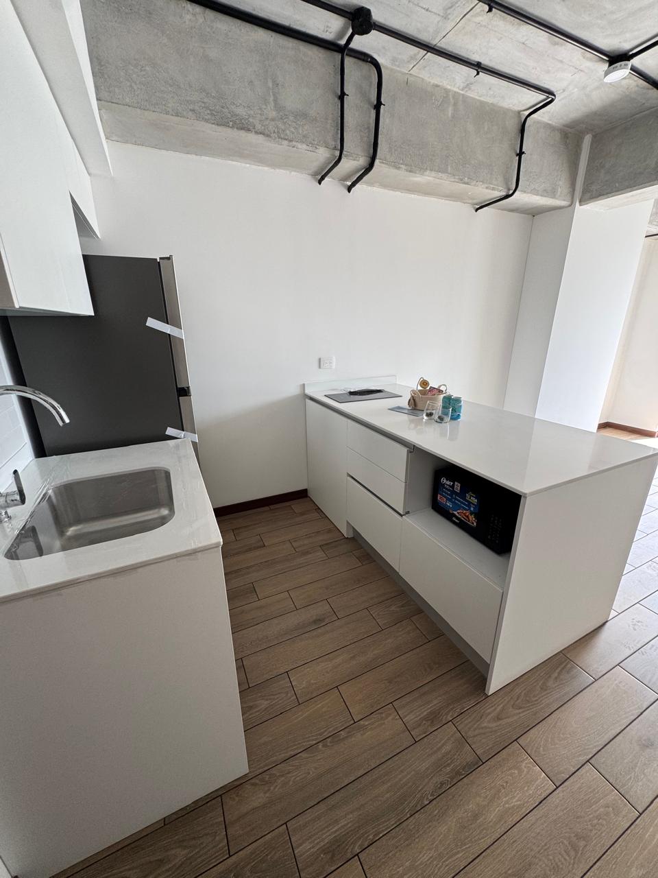 Incluye: refrigeradora, cooktop, microondas y torre de lavado (lavadora y secadora), chapa electrónica en puerta principal, mampara y espejo en baño, y cortinas.