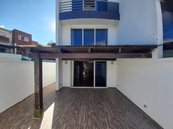baño de visitas y una amplia terraza con pérgola.