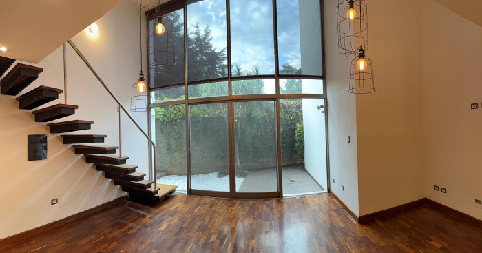 Apartamento LOFT equipado y semi amueblado, en alquiler en zona 15En el primer piso tiene el área social, sala, desayunador, cocina, baño de visitas y jardín.Refrigeradora de dos puertas verticales, estufa eléctrica, lavador, de platos eléctricos, iluminación indirecta, lavadora y secadoraEn el segundo piso tiene una amplia habitación con walking clóset y baño, equipado con juego de dormitorio, cama King sizeEl apartamento tiene patio, se puede aceptar una mascota, pequeña o mediana, máximo 2 personasIncluye Mant, agua, extracción de basura, recepción y guardianiaTiene un area de 100 m²,47 m² en la parte de abajo y 27 m² en la parte de arriba25 m2ª de parqueoAmenidades:– Business center– Gimnasio– Terraza– Área de BBQ– Salón social . - Código de Inmueble: PAA-084-05-10-18