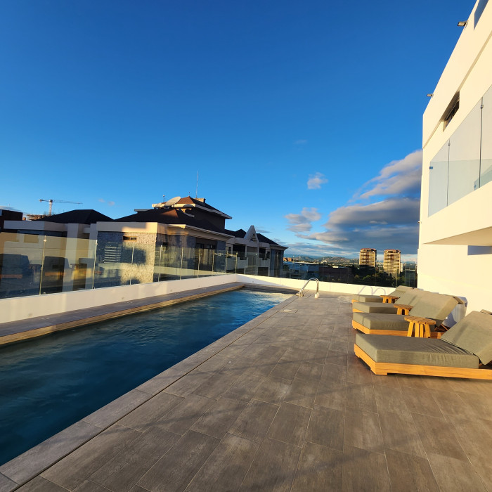 En renta apartamento en la Zona 10, Muy cerca de Oakland mall, Centro Comercial La estación y Boulevard los próceres. Una ubicación céntrica y accesible, a 10 minutos del aeropuerto INTERNACIONAL LA AURORA. con un área total de 68.50 m2 de construcción bodega 1 habitación 1 baño completo1 parqueo para vehiculo área de sala área de cocinacuenta con linea blanca (Lavadora y secadora, estufa, microondas y refrigerador).El edificio cuenta con:- Piscina de 20mts en azotea- Gimnasio en azotea con vista espectacular- Circuito para bicicletas y scooters con playground- Salón social- Business center- Planta eléctrica para todo el edificio- Circuito cerrado y seguridad 24/7- Parqueo techado de visitas- Pet FriendlyPrecio Negociable, e incluye mantenimiento, se renta con linea blanca y lamparas Incluye cable y servicio de internet