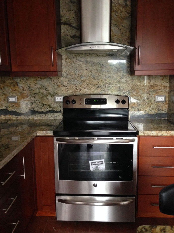 puertas verticales, estufa eléctrica con extractor de vidrio templado e