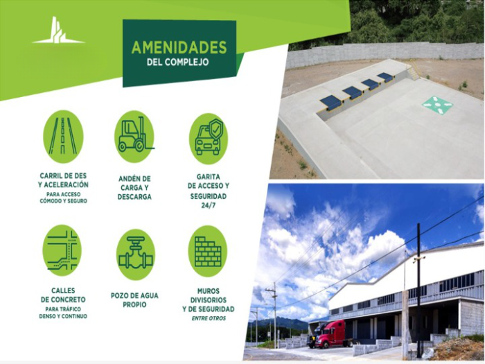 CITYMAX DIAMOND ALQUILER/RENTABodega nueva para estrenar en Condominio Industrial ubicado en km. 62 carretera Palín - Escuintla. Con garita de control de ingresos y egresos, pozo propio, seguridad 24/7, muros divisorios y de seguridad, carril de des y aceleración para acceso cómodo y seguro, calles de concreto para tráfico denso y continuo, andén de carga y descarga de 1.25 mt2 de altura, grosor de piso en bodega 17 cm.MEDIDAS POR AREAS356.64m de bodega de almacenaje (7 m de altura al hombro y 8 m de altura libre)98.96m de área de rampa45.76m de área de 4 parqueosEste valor incluye Mantenimiento del complejo industrial y tambien IVA (siempre generamos factura). Lo que se tendría que pagar por separado es la luz eléctrica.la bodega cuenta con rampa/anden para camión y así poder descargar el producto directamente del camión a las bodegas. Precio incluye mantenimiento. Mantenimiento (seguridad, basura, agua). Energía 110 y 220v.. - Código de Inmueble: PAB-007-03-23
