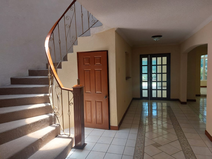 Descubre esta impresionante residencia ubicada en uno de los condominios más prestigiosos de la ciudad, donde la privacidad, el diseño y el confort se unen para ofrecerte una experiencia residencial sin igual.Terreno de 514.50 m² | Construcción de 340 m²Esta propiedad ha sido diseñada para quienes valoran los espacios amplios, funcionales y llenos de carácter. Desde su elegante sala a desnivel con chimenea hasta sus jardines privados, cada rincón invita a disfrutar y compartir.✨ Características destacadas:8 parqueos para total comodidadEstudio privado ideal para home officeCálida sala de té y comedor independienteCocina equipada con pantry y amplia alacena4 dormitorios, 3 con walk-in closet, baño privado y balcónHabitación principal con jetina y baño de lujoHabitación de huéspedes y sala familiar acogedoraJacuzzi, cisterna, bodega y habitación de servicio completa2 áreas de lavandería para máxima eficienciaAmbientes que inspiran