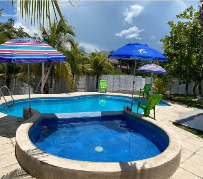 Hermosa propiedad en Venta en Aldea El Cebollito, Chiquimulilla Santa Rosa, Cuenta con una ubicación privilegiada a tan solo 30mts2 del Mar!En un terreno de 40Mts X 40Mts aprox. total: 1,609.71MtsDistribución de la propiedad:➢1 habitación con baño privado y A/C para 7 personas.➢1 habitación con baño privado y A/C para 6 personas.➢1 habitación con baño privado y A/C para 5 personas.➢1 habitación con A/C para 2 personas (Sin baño).➢Total: 4 Habitaciones.Baños:➢1 baños completo en el área social adicional.➢Total: 4 baños completos.Incluye:➢Refrigeradora➢Congelador➢Estufa➢Microondas➢Utensilios de cocina➢Camas y ropa de cama extra.➢4 A/C.➢Bomba de Agua Trupper nueva.➢Bomba de filtrado de agua piscinas nueva.➢2 Espaciosos ranchos de mangle y paja con sala, hamacas y churrasquera.➢Pozo propio de agua dulce con su tinaco aéreo con automático.➢Totalmente circulado con paredes y portón.➢Arboles frutales (Cocales, Jocote Marañón, Mango, Nance, Limonares y Almendros)➢ Piscina de 50 ????2 y piscina de Niños de 5 ????2 con bomba de filtrado de agua.➢ Cocina completa con electrodomésticos y utensilios.➢ Parqueos 6 carros aprox.➢ 2 fosas sépticas recién construidas.➢ Luz 220v. de Energuate.Actualmente se renta para fines de semana en Q3,500 en temporada normal Contrato de arrendamiento Ocret (Q2,281.5 anual). - Código de Inmueble: PVC-027-11-25
