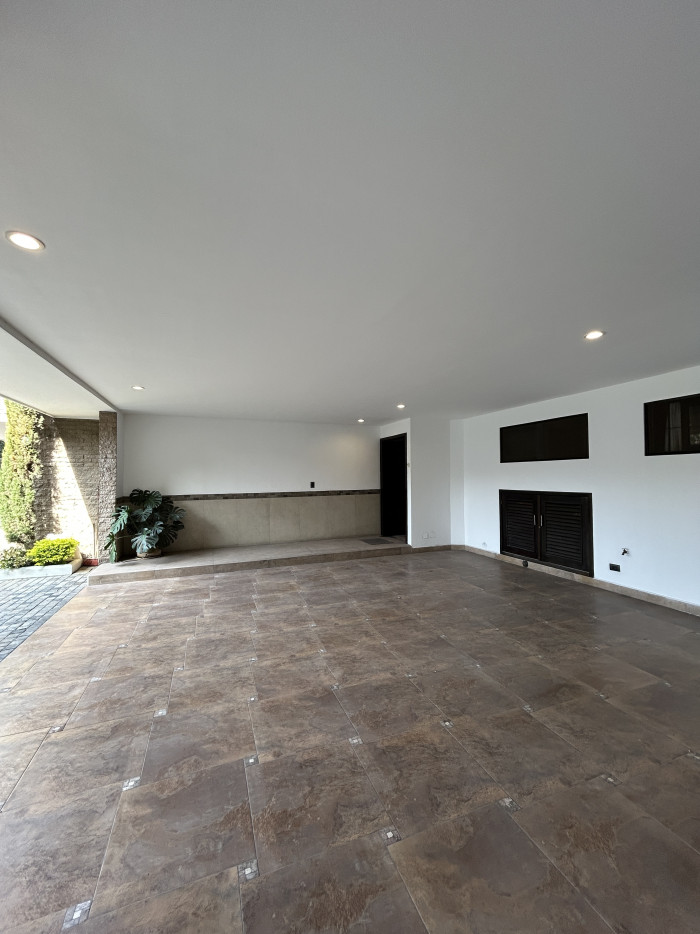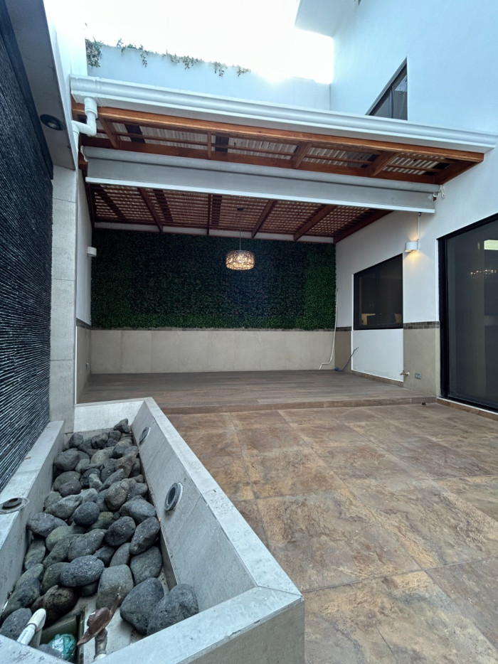 con su baño- Despensa- Bodega- 4 parqueosSegundo Nivel- Sala y comedor- Terraza con pérgola y fuente