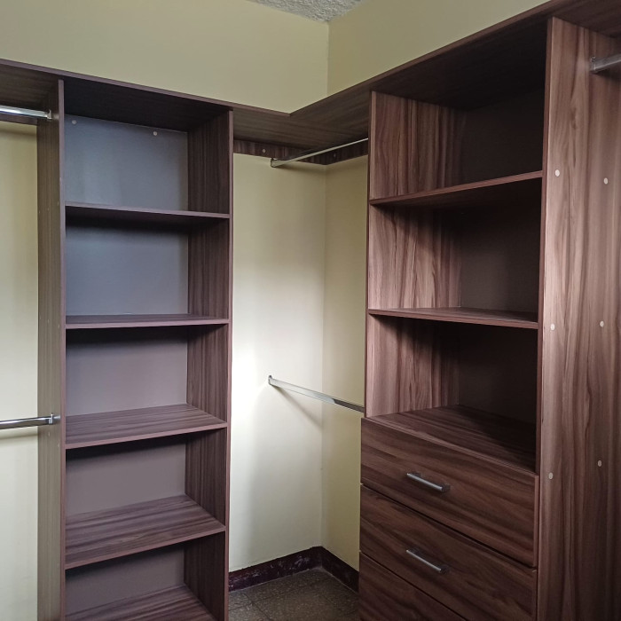 Gabinetes en la cocina, closets, portón metálico corredizo, ambientes