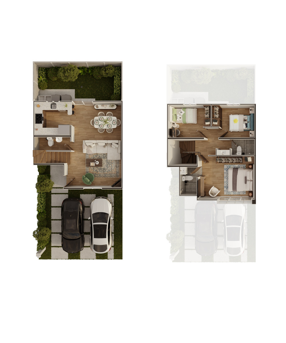 Parqueo para 2 vehículos (1 techado)