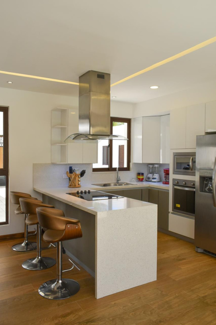 ?? Cocina moderna y lujosa: horno, microondas, estufa eléctrica con extractor y desayunador