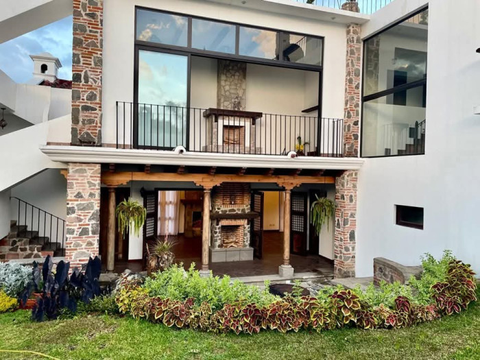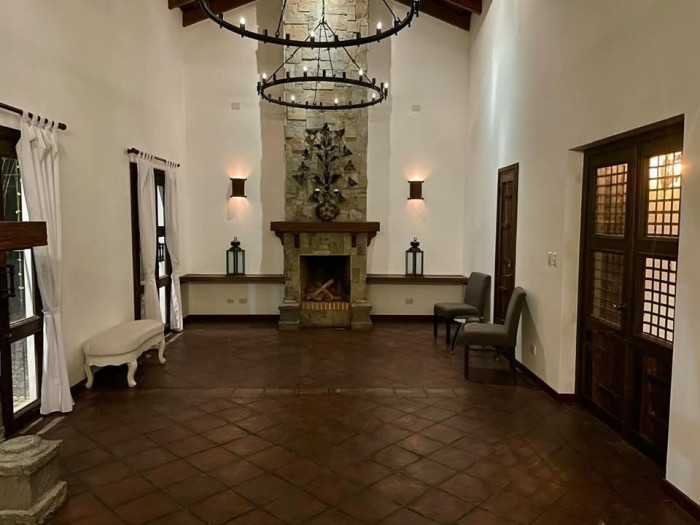 Elegante Residencia en Venta en Hacienda del Comendador en San Miguel Dueñas de Antigua Guatemala construida en 2 lotes de 20 x 21 y una construcción de 451 metros cuadrados.Distribución de la Residencia: • 2 Suites Principales con chimenea, walk-in closet, baño con bidé, balcón con vistas a los volcanes (???????? ???? ???????) • 1 habitación principal de doble altura con chimenea, Walk-in closet, baño y balcón • ⁠Sala familiar con chimenea y balcón • Área para Sauna • Sala, comedor, cocina con churrasquera de doble altura con 3 balcones⁠ • Área para Cava de Vinos⁠ • 1 Apartamento Efficiency⁠ • Amplio jardín con fire pit, área para pérgola, conexiones para piscina o jacuzzi⁠ • Baño de visitas completo⁠ • Cisterna⁠ • 2 calentadores⁠ • 2 bodegas? amplias terrazas:Terraza principal de 100 m² aproximados con espectacular vista de 360° a los volcanes.El condominio cuenta con Amenidades: • Casa club ⁠ • Salón Social • Piscina y Jacuzzi ⁠ • Cancha de tenis ⁠• Churrasqueras • Capilla• Casa club • Salón Social• Piscina y Jacuzzi⁠ • Cancha de tenis ⁠• Churrasqueras • Capilla • Parques y áreas verdes Valor de venta más gastos de ley, con grandes ventajas al momento de escriturar.. - Código de Inmueble: PVC-018-09-15-8