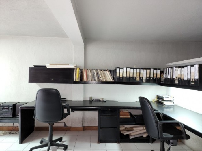 con escritorio empotrado, área amplia con varios cubículos, archivos aéreos y